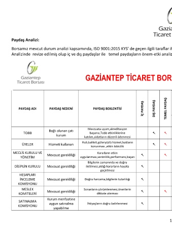 GAZİANTEP TİCARET BORSASI PAYDAŞ ANALİZİ