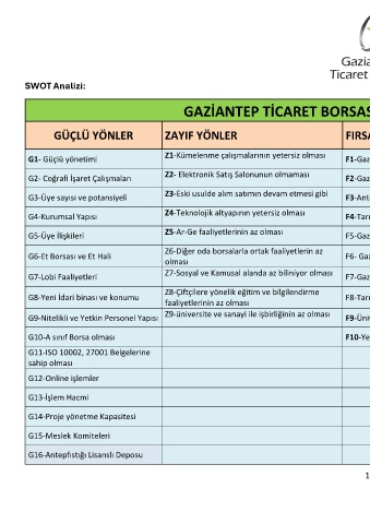 GAZİANTEP TİCARET BORSASI SWOT ANALİZİ SONUÇLARI