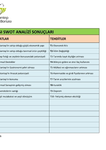 GAZİANTEP TİCARET BORSASI SWOT ANALİZİ SONUÇLARI