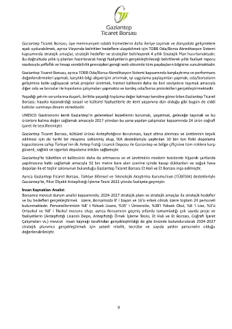Page 9 - Gaziantep Ticaret Borsası 2024-2027 Stratejik Plan