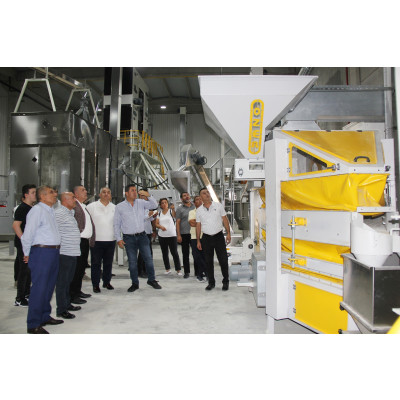 Gaziantep- Nizip Karayolu Küllü mevkiinde inşaat çalışmaları tamamlanarak, makine kurulum işlemleri gerçekleştirilen Antep Fıstığı İşleme Tesisinde, GTB Meclis Başkanı Ahmet Tiryakioğlu, Yönetim Kurulu Başkanı Mehmet Akıncı ve Meclis Üyeleri incelemelerde bulundu.