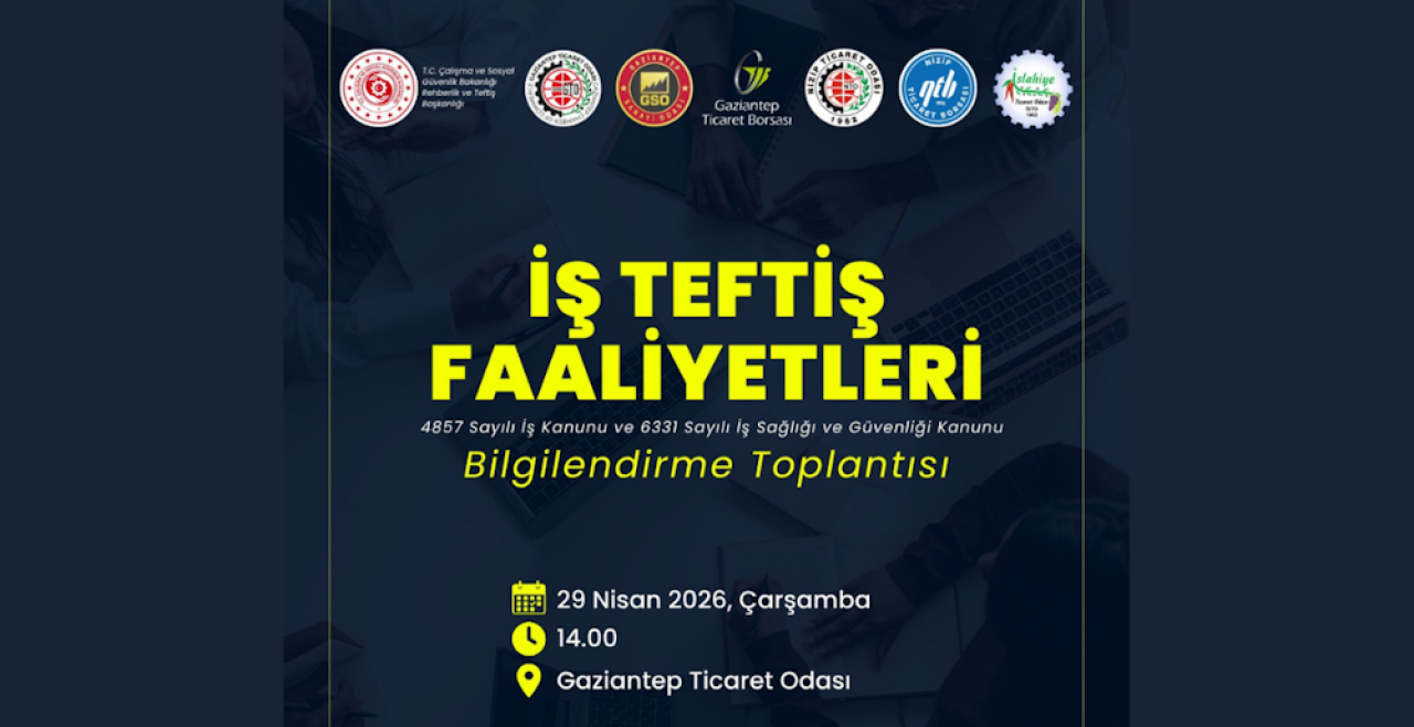 Gaziantep Ticaret Odası tarafından, çalışma hayatına ilişkin güncel mevzuatlar, teftiş uygulamaları ve sahada karşılaşılan sorunlar hakkında bilgilendirme amacıyla “İş Teftiş Faaliyetleri Bilgilendirme Toplantısı” düzenlenecektir.