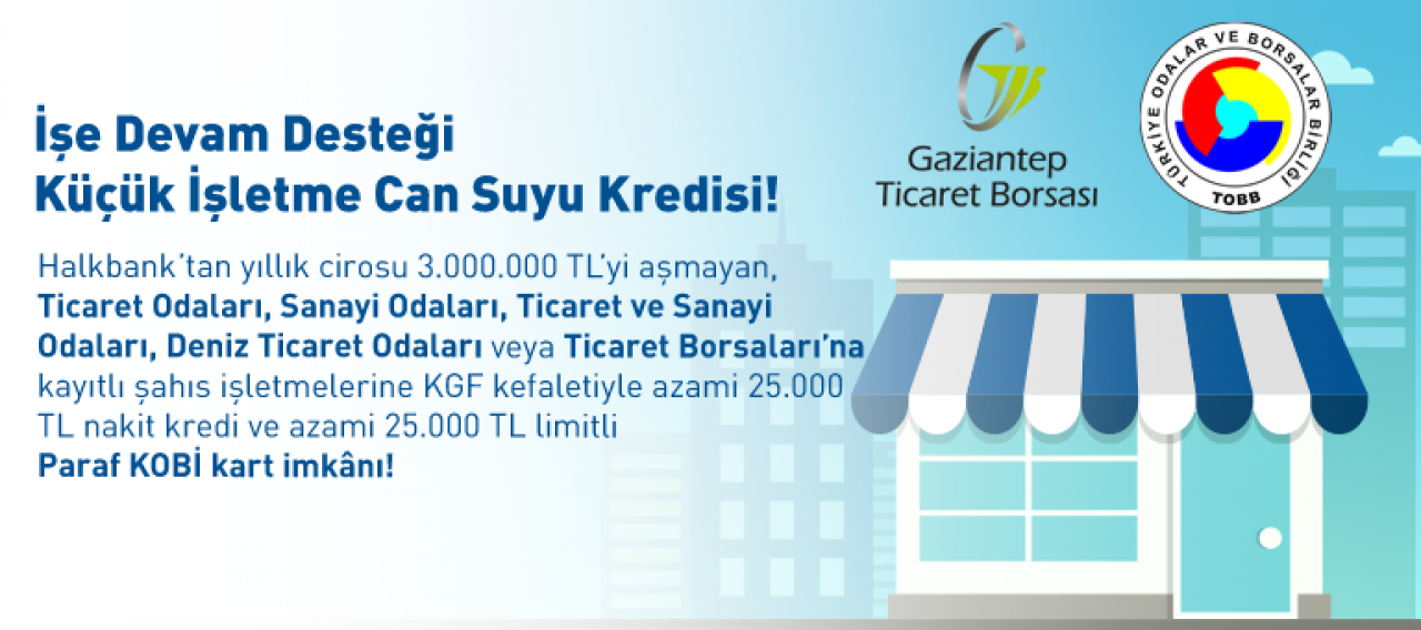 Türkiye Odalar ve Borsalar Birliği'nin talepleri doğrultusunda; dünya çapında bir salgına dönüşen ve etkileri ülkemizde de hissedilen Covid-19 virüsü ile ilgili gelişmelerden olumsuz etkilenen işletmelerimizin ticari hayatlarını sürdürebilmeleri ve mevcut istihdam seviyelerini devam ettirebilmeleri için Ekonomik İstikrar Kalkanı tedbirleri kapsamında ‘‘İşe Devam Kredi Desteği-Can Suyu İşletme Kredisi’’ oluşturulmuştur.