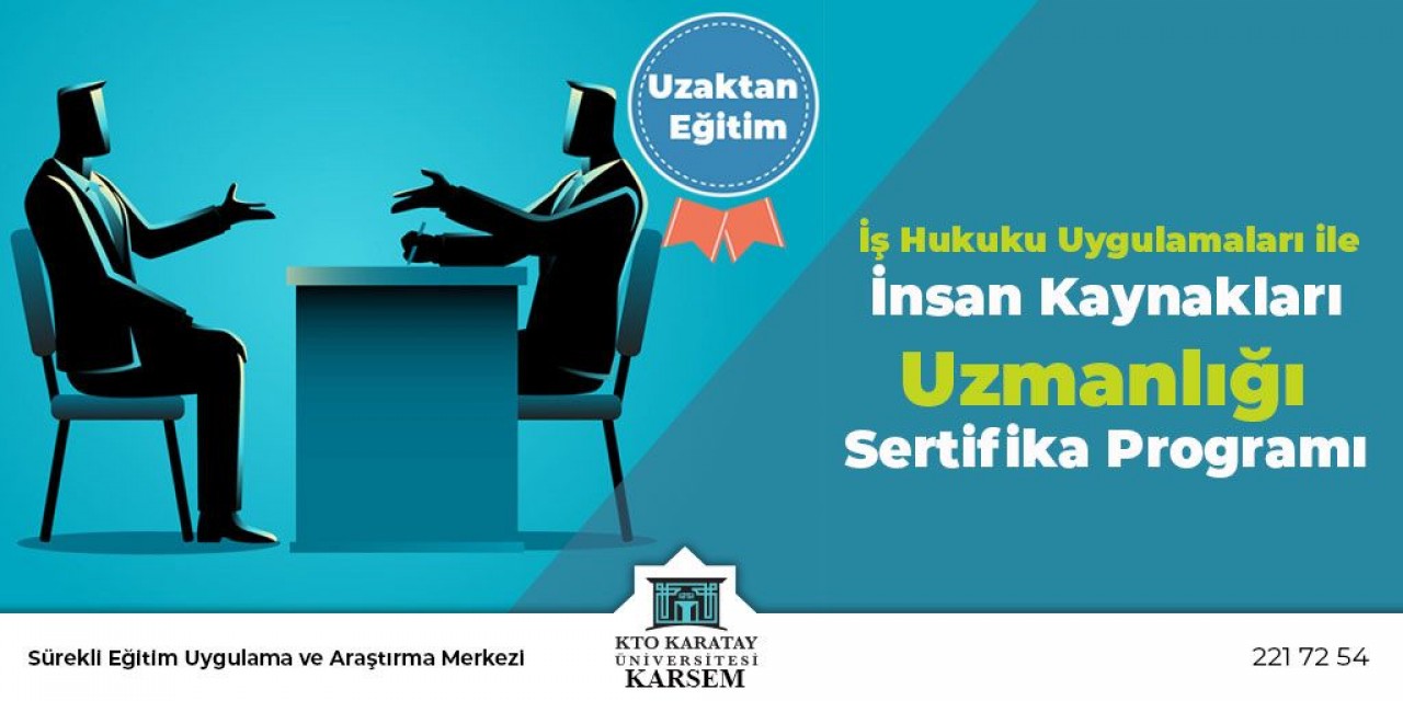 KTO Karatay Üniversitesi Rektörlüğü Sürekli Eğitim Uygulama ve Araştırma Merkezi (KARSEM) tarafından 17 Ağustos 2020 tarihinde alanında deneyimli ve söz sahibi akademisyenler ile Uzaktan Eğitim olarak İnsan Kaynakları Uzmanlığı Sertifika Programı düzenlenecektir.