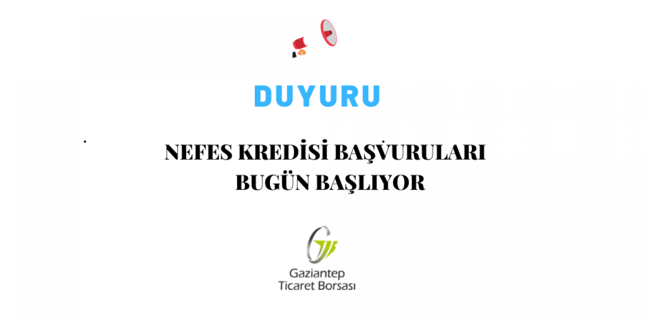 Küçük ve Orta Ölçekli İşletmelerin (KOBİ) finansman sorunlarının giderilmesine katkı sağlamak üzere geçtiğimiz dönemlerde oda ve borsaların değerli katkıları ile başarıyla gerçekleştirilen Nefes Kredisi projesi tekrar başlatılmaktadır. Projeye ilişkin protokol Kredi Garanti Fonu ve bankalar ile imzalanmıştır. Protokol imzalanan bankalar, Ziraat Bankası, Halkbank, Vakıfbank, İş Bankası, Garanti Bankası, Yapı ve Kredi Bankası, Akbank, Denizbank, Ziraat Katılım ve Vakıf Katılım Bankası'dır.