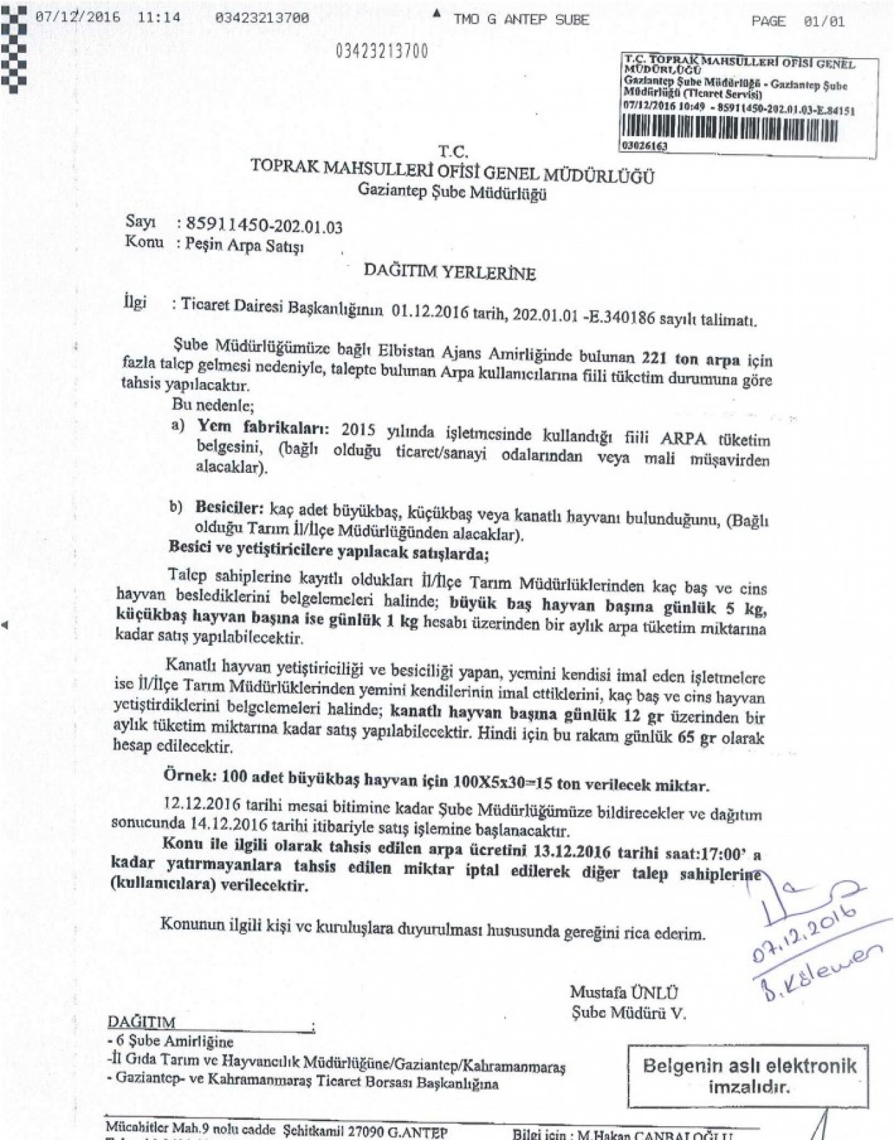 TMO | Arpa Satışı