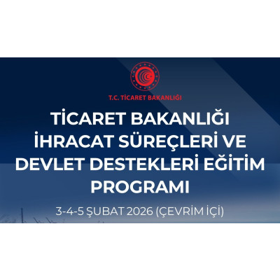 Ticaret Bakanlığı'nın ilgi yazısında; 3-5 Şubat 2026 tarihlerinde Ticaret Bakanlığı tarafından "Ticaret Bakanlığı İhracat Süreçleri ve Devlet Destekleri Eğitim Programı"nın çevrimiçi olarak gerçekleştirileceği belirtilmiş olup, programa katılmak isteyenlerin 2 Şubat 2026 tarihi mesai bitimine kadar