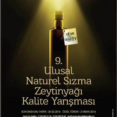 Zeytindostu Derneği tarafından bu yıl 9.su düzenlenen Ulusal Naturel Sızma Zeytinyağı Kalite Yarışması son başvuru tarihi 25.02.2016 olarak belirlenmiş olup Ödül Töreni 02.04.2016 tarihinde yapılacaktır.