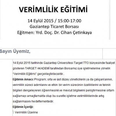 Ekonomi Bakanlığı Güneydoğu Anadolu Bölge Müdürlüğü tarafından 9-10 Eylül 2015 tarihinde Şanlıurfa da Pamuk Sorumlu Denetçi Eğitimi düzenleneceği Borsamıza bildirilmiştir. 11 Eylül 2015 tarihinde PSD yazılı sınavının yapılacağıda ilgili yazıda belirtilmektedir. Pamuk Sorumlu Denetçi eğitimine katılmak istiyenlerin evrakları ile bi...