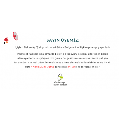 İçişleri Bakanlığı tarafından 02 Mayıs 2021 tarihli “Çalışma İzinleri Görev Belgelerine" ilişkin genelge yayımlandı.